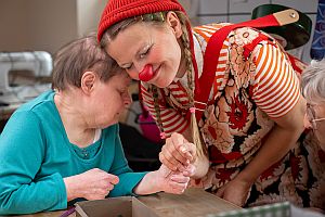 Vor Kurzem haben wir ein witziges Foto von 2 Clowns erhalten. „Roger Palletti“ hat seine Brille gesucht und da haben die besuchten Kinder ihm und „Mizzi Mortadella“ zwei hübsche Brillen gebastelt.