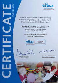 In den Jahren 2015, 2018 und 2025 wurde dem KlinikClowns Bayern e.V. das Qualitäts-Zertifikat der EFHCO überreicht. Der KlinikClowns Bayern e.V. erfüllt die Kriterien der Qualitätsrichtlinien hinsichtlich Transparenz und künstlerischer Professionalität und leistet eine herausragende Arbeit für den Einsatz von Klinikclowns im deutschen Gesundheitswesen.
